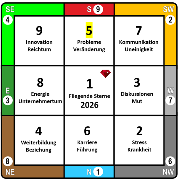 Die Fliegenden Sterne 2026 - die Bedeutung der Energie in den einzelnen Richtungen.